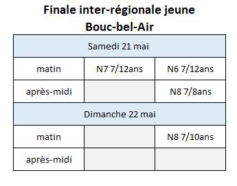 N6 7-12 ans : Samedi 21 mai : RDV à 10h30 à Trets, début de la compétition à 12h00 en sol, Palmarès à 13h40.