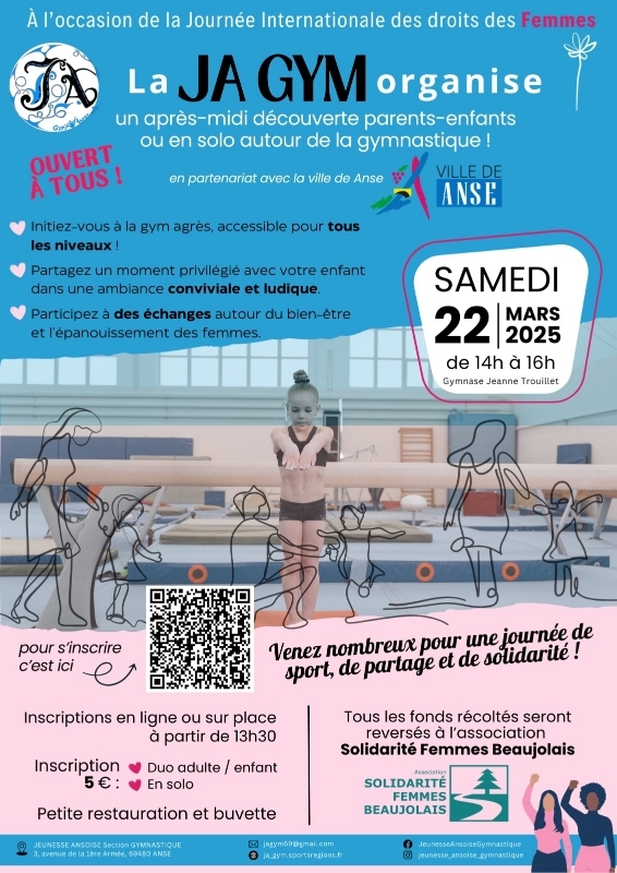 Le samedi 22 mars, en solo, ou en binôme avec votre enfant, venez découvrir notre discipline, la Gymnastique Artistique, et vous essayer aux agrès. Des parcours et ateliers gymniques vous seront proposés.