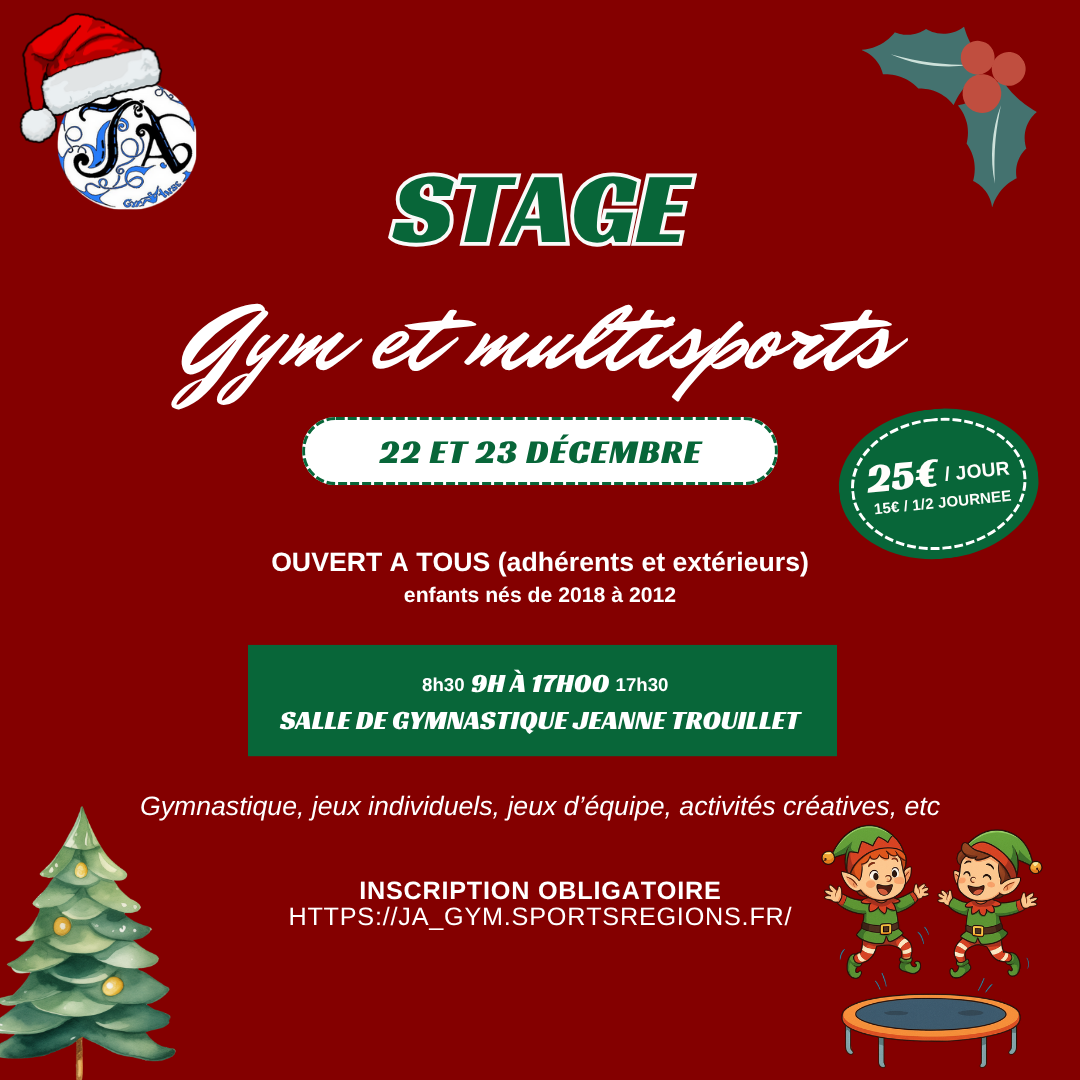 STAGE GYMNASTIQUE / MULTI-SPORTS POUR LES VACANCES : Du 22/12/2025 au 23/12/2025