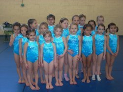 Les gymni de leur coté ont inauguré leur nouveau justaucorps Moreau : Turquoise sans manche, plein de strass et de paillettes.