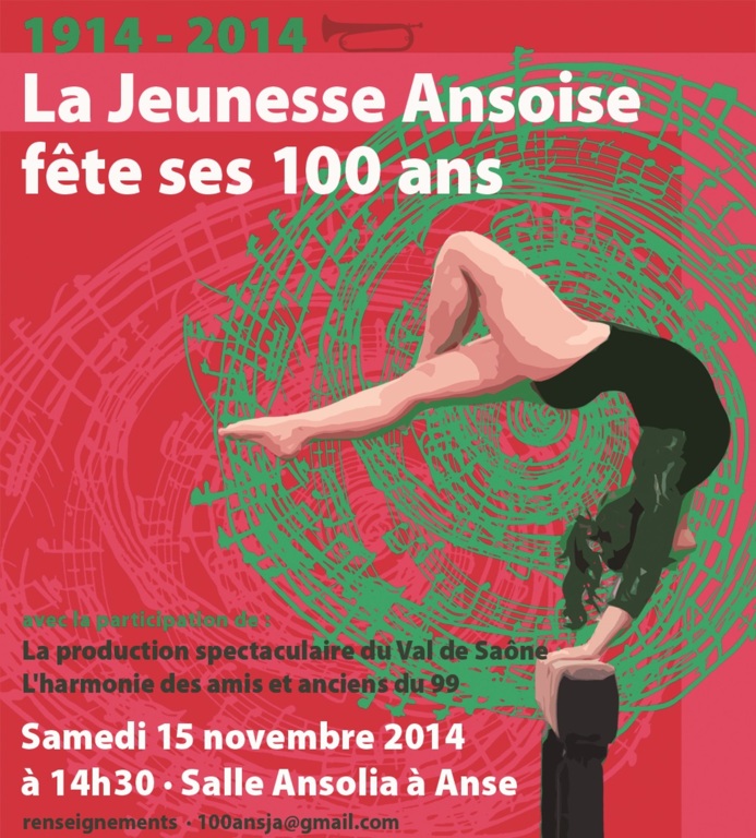 Le Samedi 15 Novembre 2014, la Jeunesse Ansoise fêtera ses 100 ans à Ansolia. Au programme :