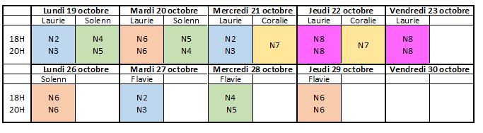 Les groupes de compétition auront cours pendant ces vacances de novembre suivant le planning joint (cliquer dessus) entre 18 et 20h