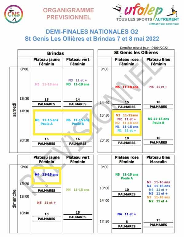 Planning Entraînements